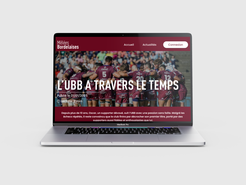 Concevoir une plateforme claire, moderne et attractive, permettant à tout passionné de rugby à Bordeaux de retrouver des informations fiables et mises à jour.